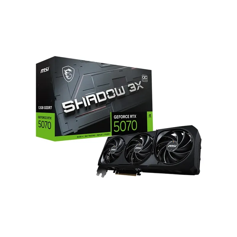 La MSI GeForce RTX 5070 12G SHADOW 3X OC est une carte graphique haut de gamme qui repousse les limites de la performance. Dotée d'une puce graphique RTX 5070 et de 6144 CUDA Cores, elle offre un rendu ultra-détaillé et une rapidité d'exécution optimale. Son chipset Nvidia cadencé à 2542 MHz garantit une expérience fluide, même dans les jeux les plus exigeants. Grâce à ses 12GB de mémoire GDDR7 à 28000 MHz, elle gère sans difficulté les hautes résolutions et le ray tracing en temps réel. Avec ses connectiques 1x HDMI et 3x DisplayPort, elle prend en charge plusieurs écrans pour une immersion totale.