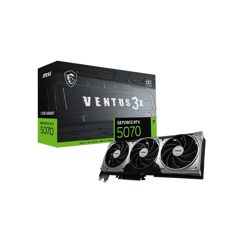 Pensée pour les gamers qui veulent une expérience fluide et durable, la MSI GeForce RTX 5070 12G VENTUS 3X OC intègre une Puce graphique RTX 5070 et un chipset Nvidia capable de pousser la fréquence jusqu’à 2557 MHz. Elle offre toute la réactivité nécessaire pour les jeux actuels et à venir.