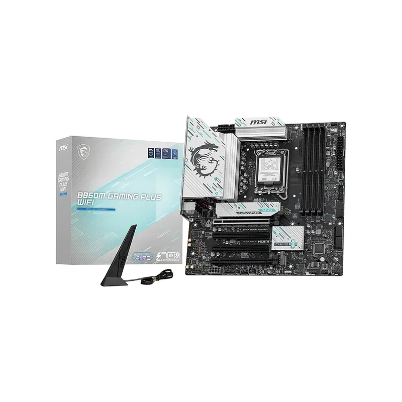 Optez pour la MSI B860M GAMING PLUS WIFI, une Carte mère Micro ATX conçue pour offrir puissance et connectivité aux joueurs et professionnels exigeants. Dotée du Chipset Intel B860 et du Socket Intel 1851, elle prend en charge les dernières générations de processeurs Intel. Sa compatibilité avec 4 connecteurs RAM DDR5 assure une fluidité maximale. Avec 4 ports PCI-Express 16x, elle permet des extensions graphiques et de stockage avancées. Son M.2 PCIe 5.0 garantit des vitesses de transfert ultra-rapides. De plus, elle dispose de Thunderbolt 4, d’une connexion LAN 5 GbE, et du Wi-Fi 7/Bluetooth 5.4 pour une connectivité sans faille.