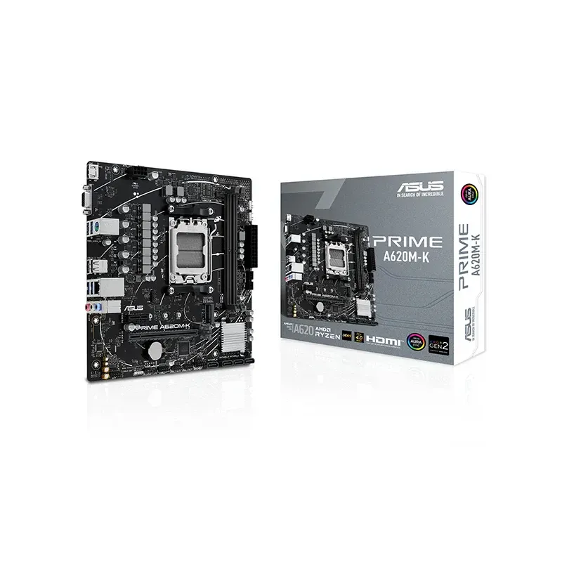 La carte mère ASUS PRIME A620M-K est une solution compacte et performante pensée pour les utilisateurs exigeants. Compatible avec le socket AMD AM5, elle utilise le chipset AMD A620 qui garantit stabilité et efficacité pour vos composants.
