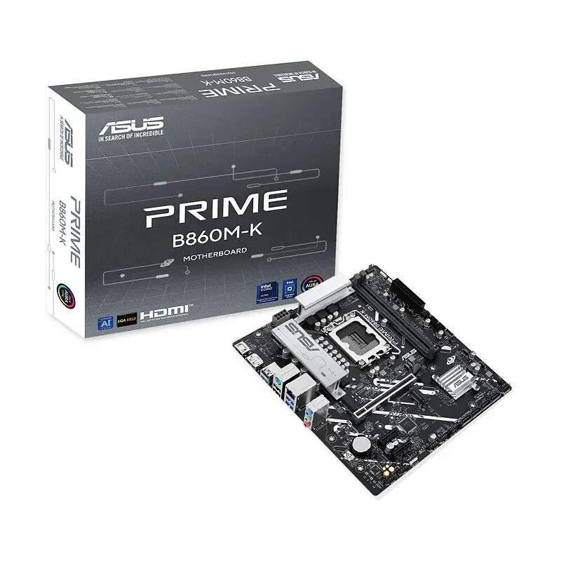 La carte mère ASUS PRIME B860M-K est une solution compacte et moderne pour les utilisateurs à la recherche de performances fiables sous plateforme Intel. Avec son format Micro ATX, elle s’adapte facilement aux boîtiers compacts tout en offrant de grandes possibilités d’extension.