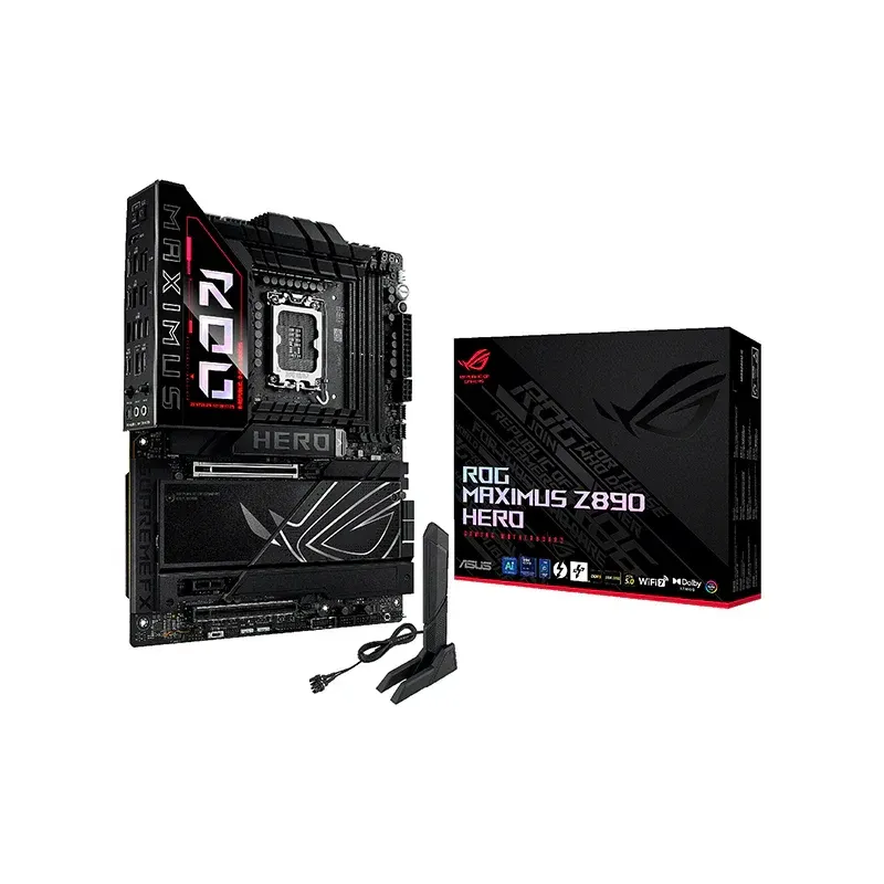 La ASUS ROG MAXIMUS Z890 HERO est une carte mère ATX haut de gamme pensée pour les passionnés de performance et d’overclocking. Compatible avec les derniers processeurs Intel grâce à son socket 1851 et son puissant chipset Intel Z890, elle offre une stabilité extrême et des capacités avancées pour les setups exigeants.