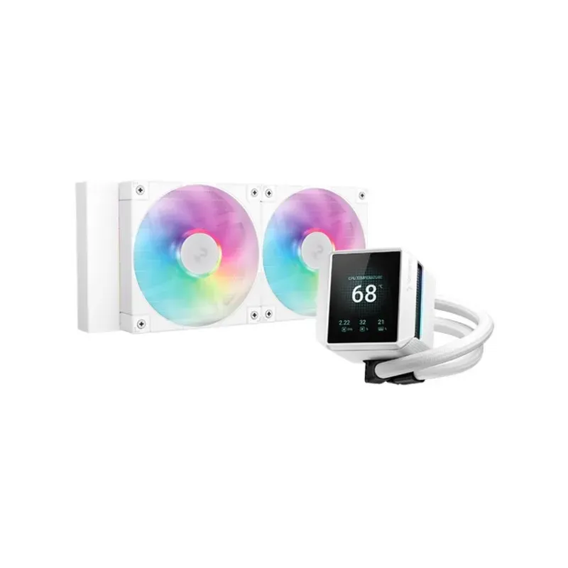 Le DEEPCOOL MYSTIQUE 240 ARGB Blanc est un CPU Cooler élégant et performant conçu pour les utilisateurs exigeants. Ce Watercooler intègre 2 ventilateurs de 120 mm, offrant un débit max. de 72.04 CFM pour un flux d’air puissant et régulier. Malgré sa puissance, il reste silencieux grâce à un bruit max. de 38,71 dB, même à une vitesse de rotation de 2400 tr/min.