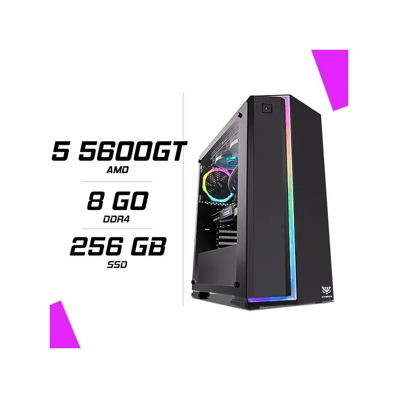 Le AMD RYZEN 5 5600GT est un processeur puissant avec 6 cœurs et 12 threads, une Fréquence CPU de 3.6 GHz et jusqu’à 4.6 GHz en mode Turbo. Avec un Cache total de 19 MB (3 MB L2 + 16 MB L3) et un Socket AMD AM4.